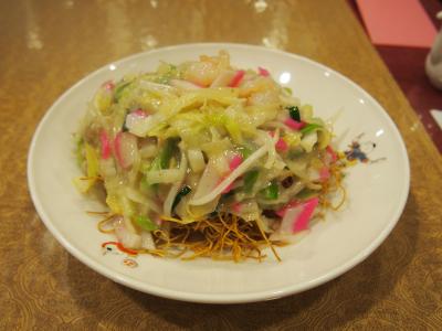 皿うどんを注文。細いパリパリした麺が香ばしくて、ちょっと甘めのあんかけは付いてきたソースをかけると味が変わってとても美味しかったです。