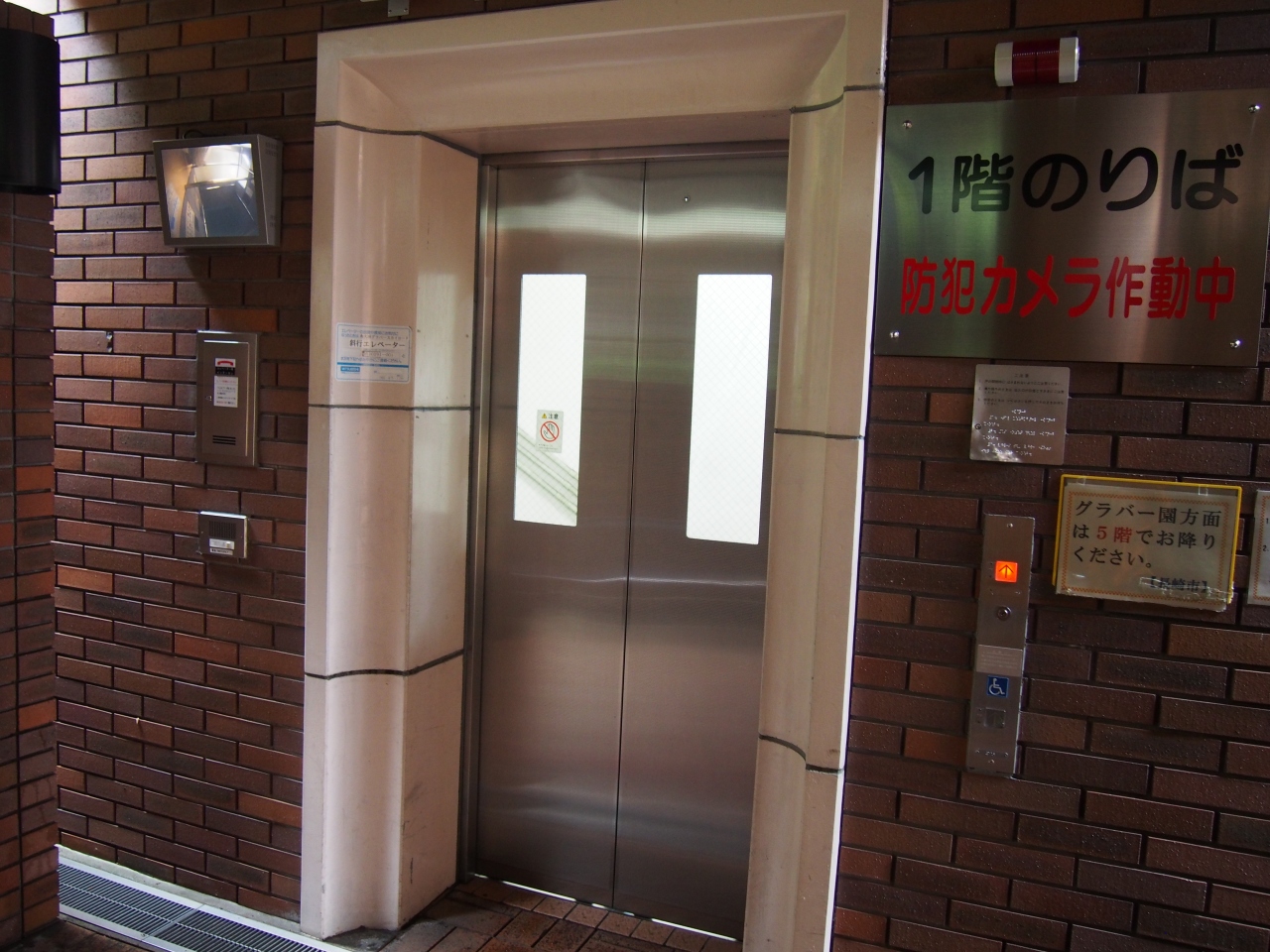 電停「石橋」からすぐ、珍しい「公道エレベーター」です。