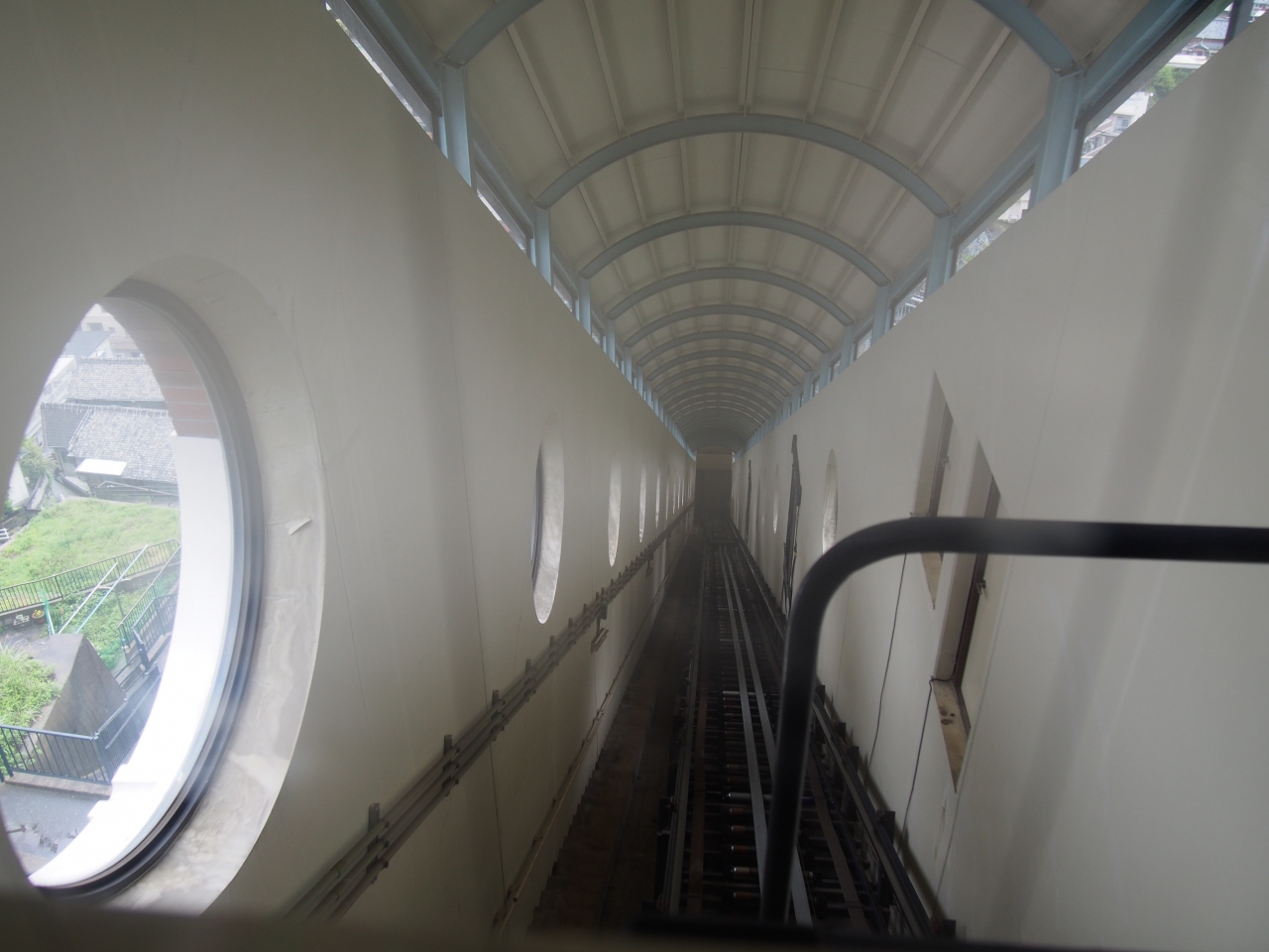 グラバー園は第一ゲートから入ると坂を登りながら見学するようになりますが、このエレベーターを使うと下りながら見学できる第二ゲートから入園することができます。