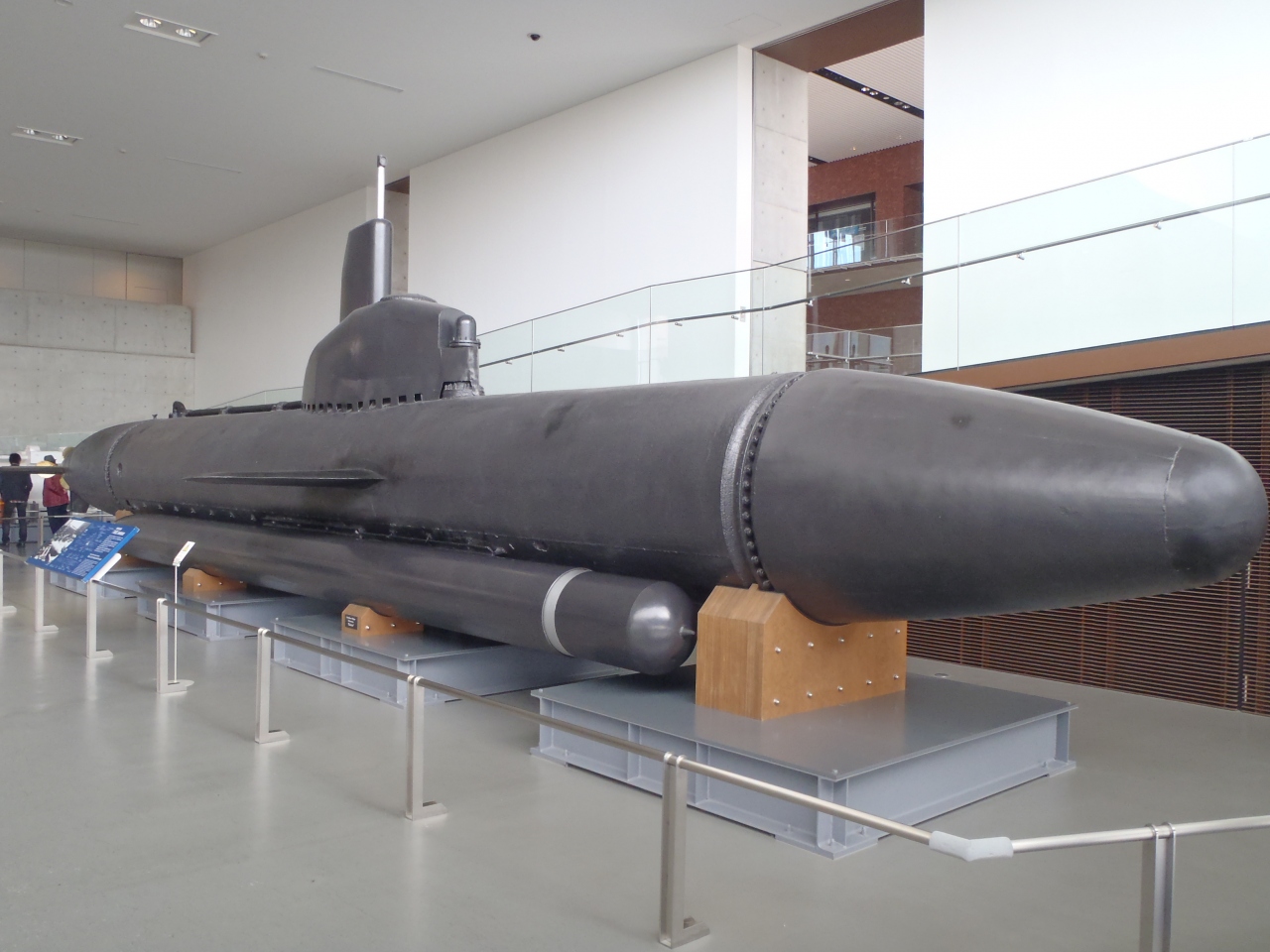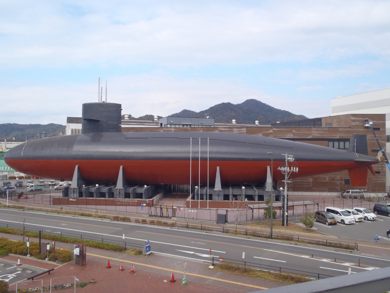 大和ミュージアムのテラスから、潜水艦全体を撮影できるスポットがあります。