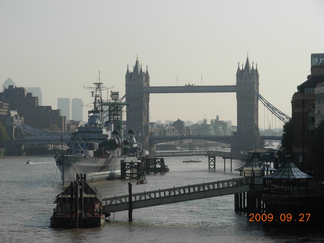テムズ川のタワーブリッジとロンドンブリッジの間にあるシティ桟橋。その桟橋の一部に繋留されているのが巡洋艦ベルファスト。実際に活躍していた軍艦1隻を丸ごと保存して、記念館として使われている。大英博物館の分館となっているそうだ。