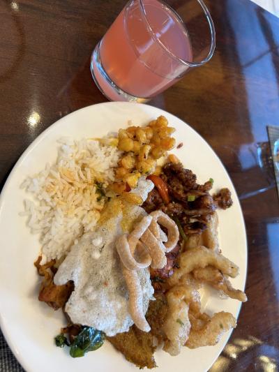 宿泊ではなくチームランチをヒルトンのブッフェへ。ベジとノンベジでエリアがわかれていてお料理が取りやすくなっていました。辛いものとそうでないものもバラエティ豊か。