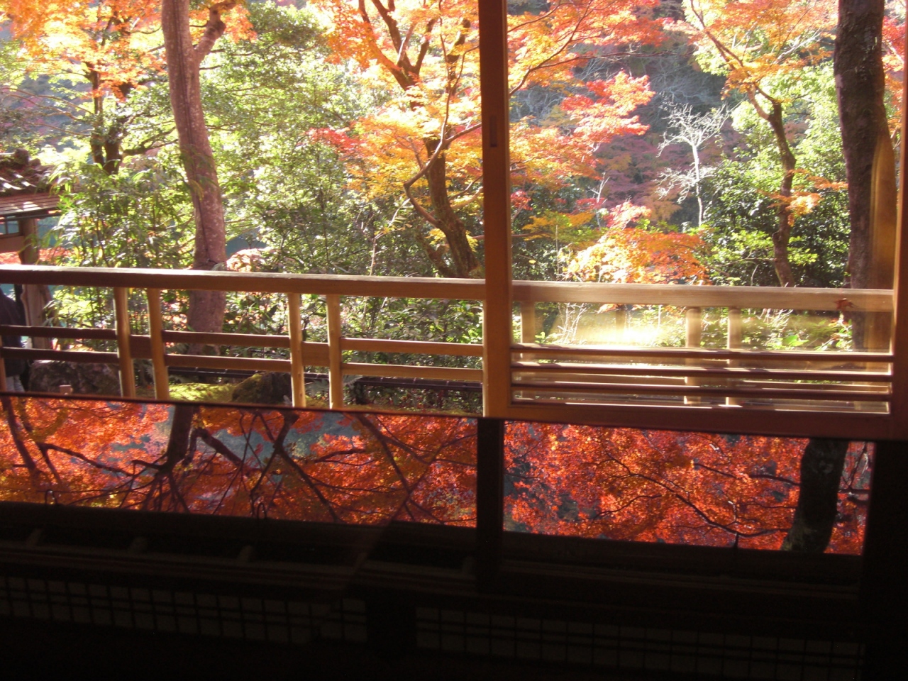 客殿入口で入場料(400円)を支払い客殿内へ、客殿からは保津峡や嵐峡そして遥か彼方に京都市街が見渡せ客殿内は人も少なくて心行くまで風景を堪能出来ました。