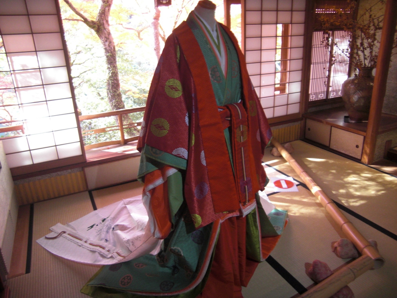 次は十二単が展示している部屋で丸窓の部屋の順番を待ちます。