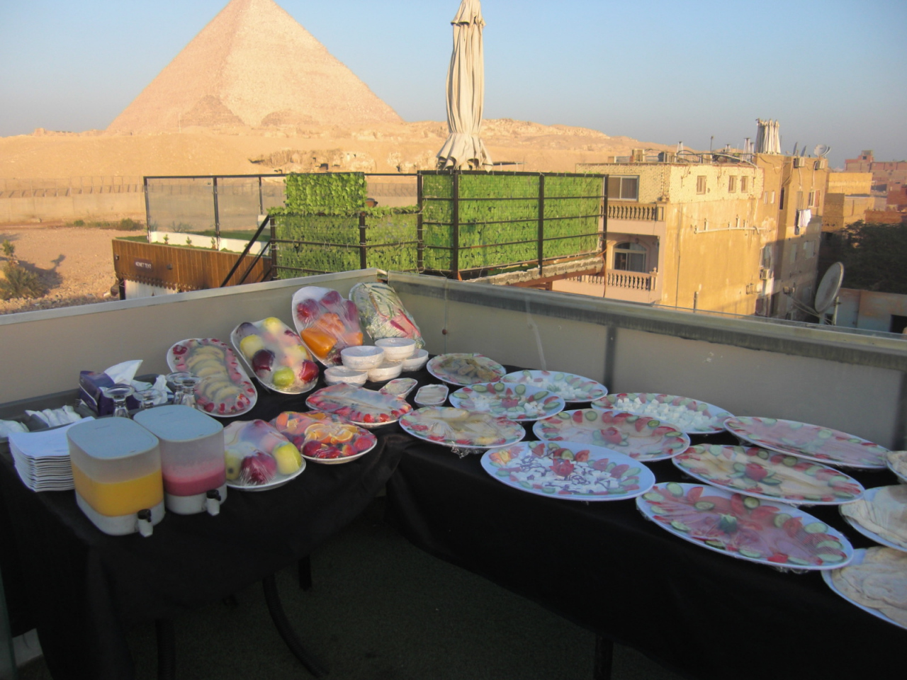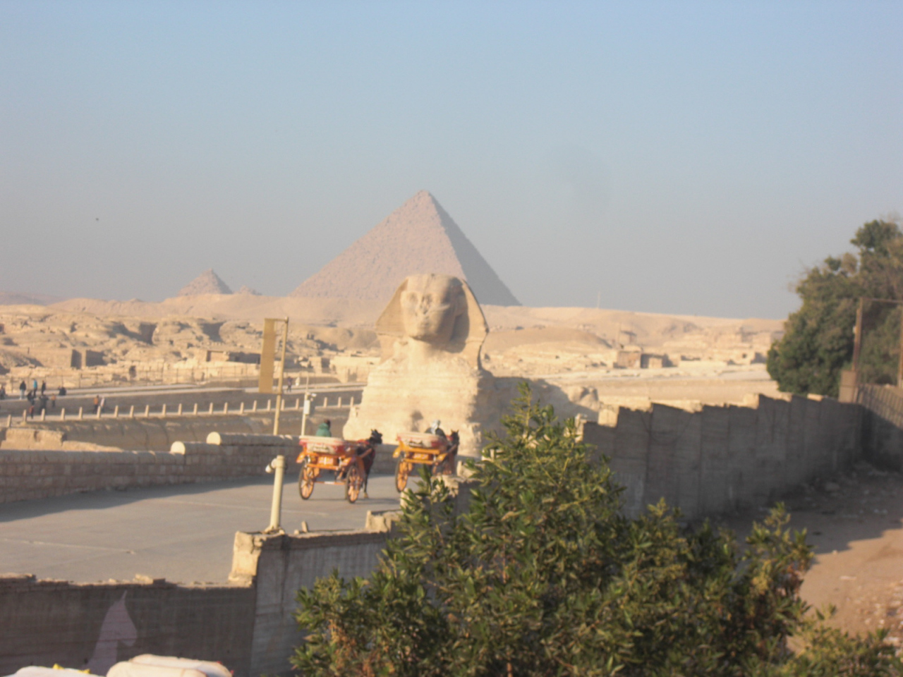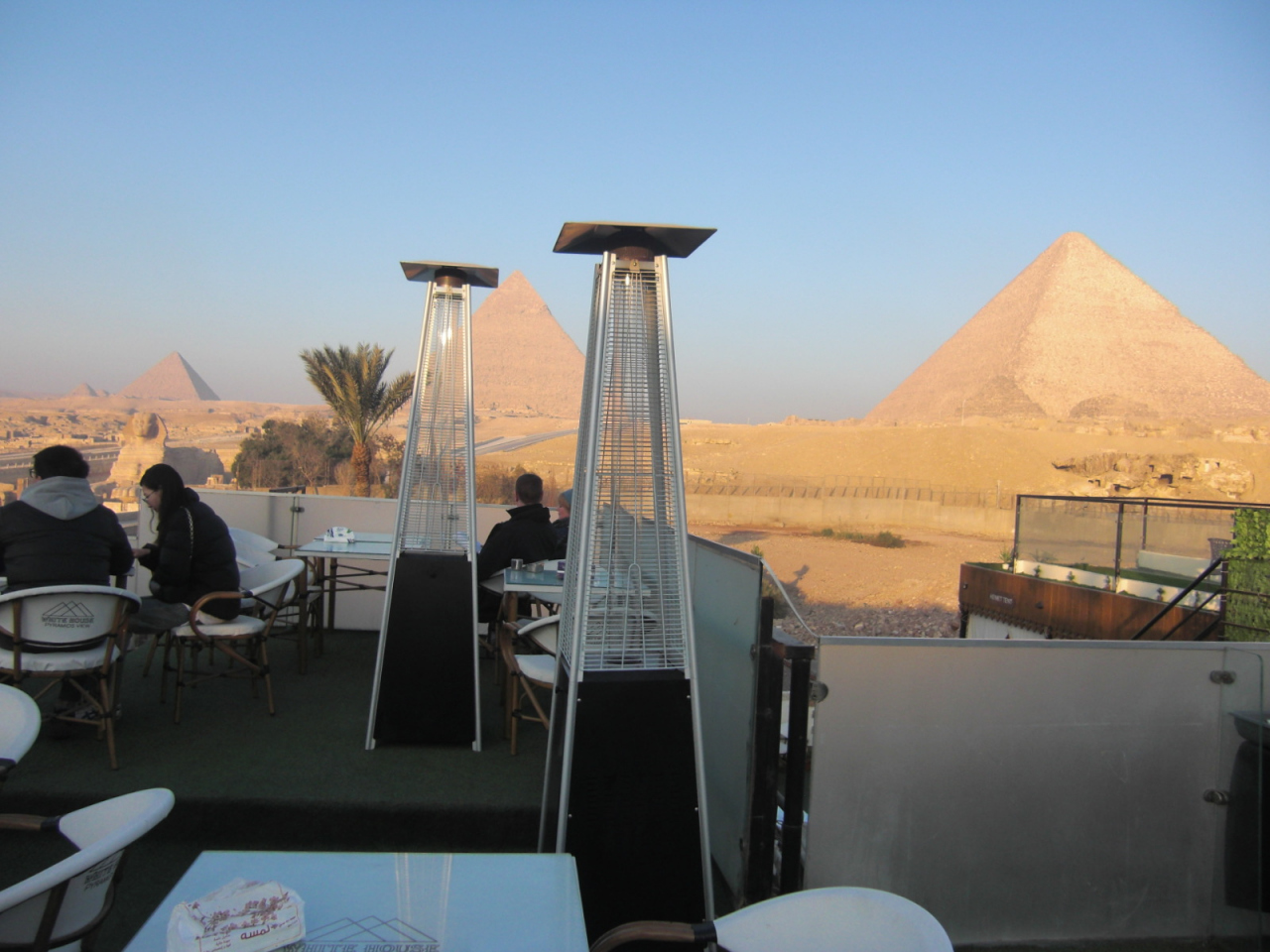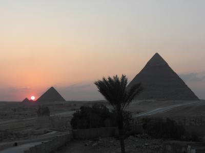 部屋の窓からはスフィンクスが見えホテルの屋上からはクフ王、カフラー王、メンカウラー王のピラミッドが見渡せメンカウラ王の横に涼むサンセットや音と光のショーが一望出来て2日間ピラミッドの眺めを堪能しました。