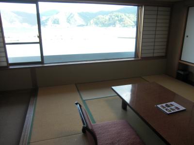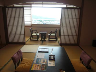 お部屋は5階、正面の一面の窓からは竹の海岸を見渡せキラキラ輝く海面がとても奇麗でした。