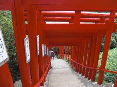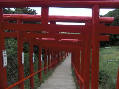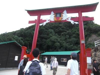 晴天から曇り空へ、停滞も無くスムーズにツアーバスは元乃隅神社に到着。