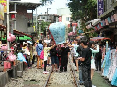 瑞芳駅から平渓線で十份に行き天燈上げを楽しみました。