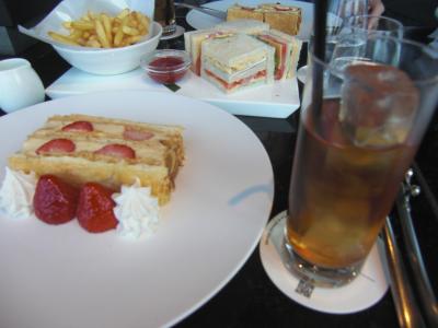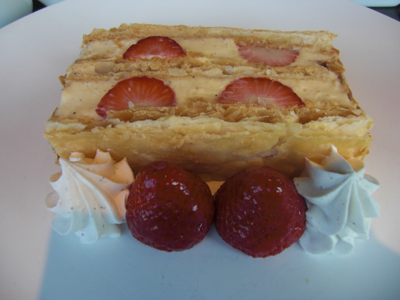 窓側の席を予約していたので外の景色を楽しみながらの懐かしの苺のミルフィ-ユを味わうのは至福のひと時でした。- 旅行時期