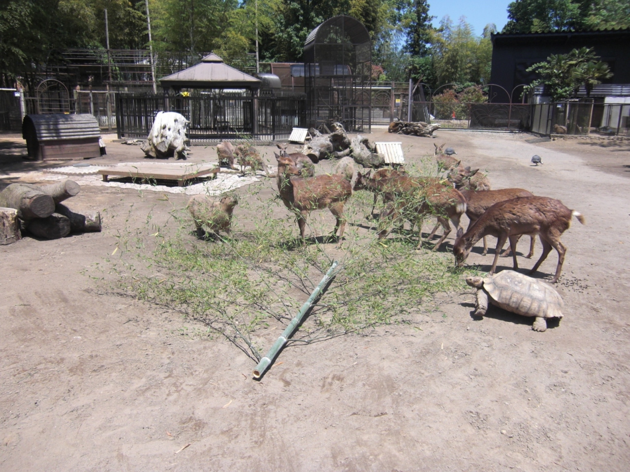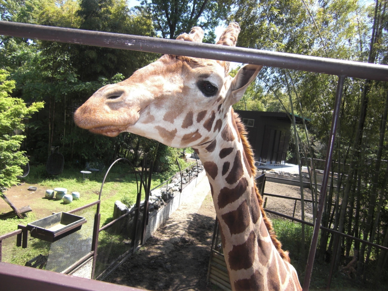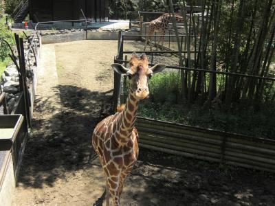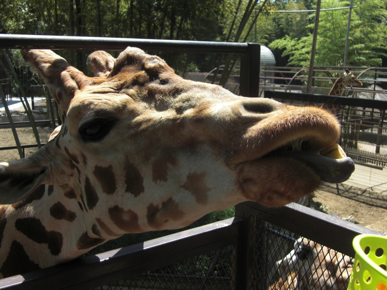 キリン、朝はお腹を空かしているので朝一番の入場で餌(500円)を購入して同じ目線でキリンに餌をやりながら触れ合えました。