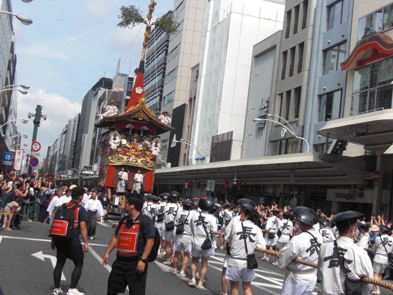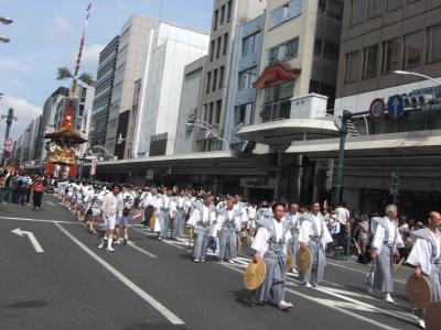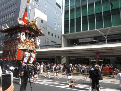 7月17日、朝8時45分に四条烏丸の山鉾巡行の出発地に到着。 既に人垣が出来て身動きが取れない状態。