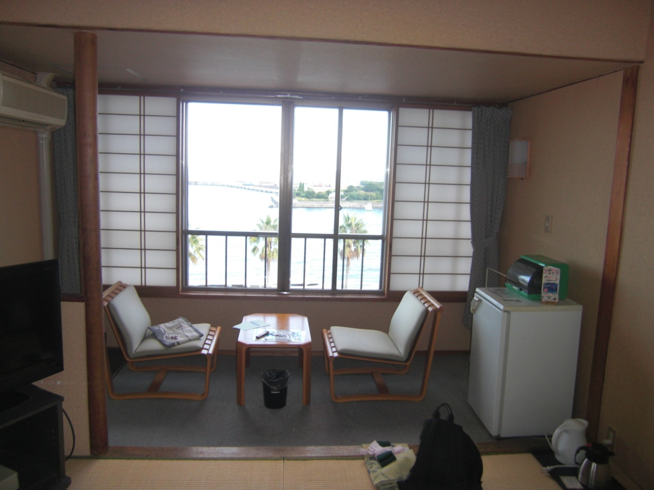 部屋の左手の小窓からは熱海の街の風景が一望。