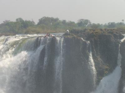 橋の中央辺りにはバンジ?・ジャンプがあり、やって見たい気持ちを抑えてとにかくザンビア側の入国事務所に到着、入国税を払って無事ザンビア入国、ザンビア側のビクトリアの滝を散策しました。