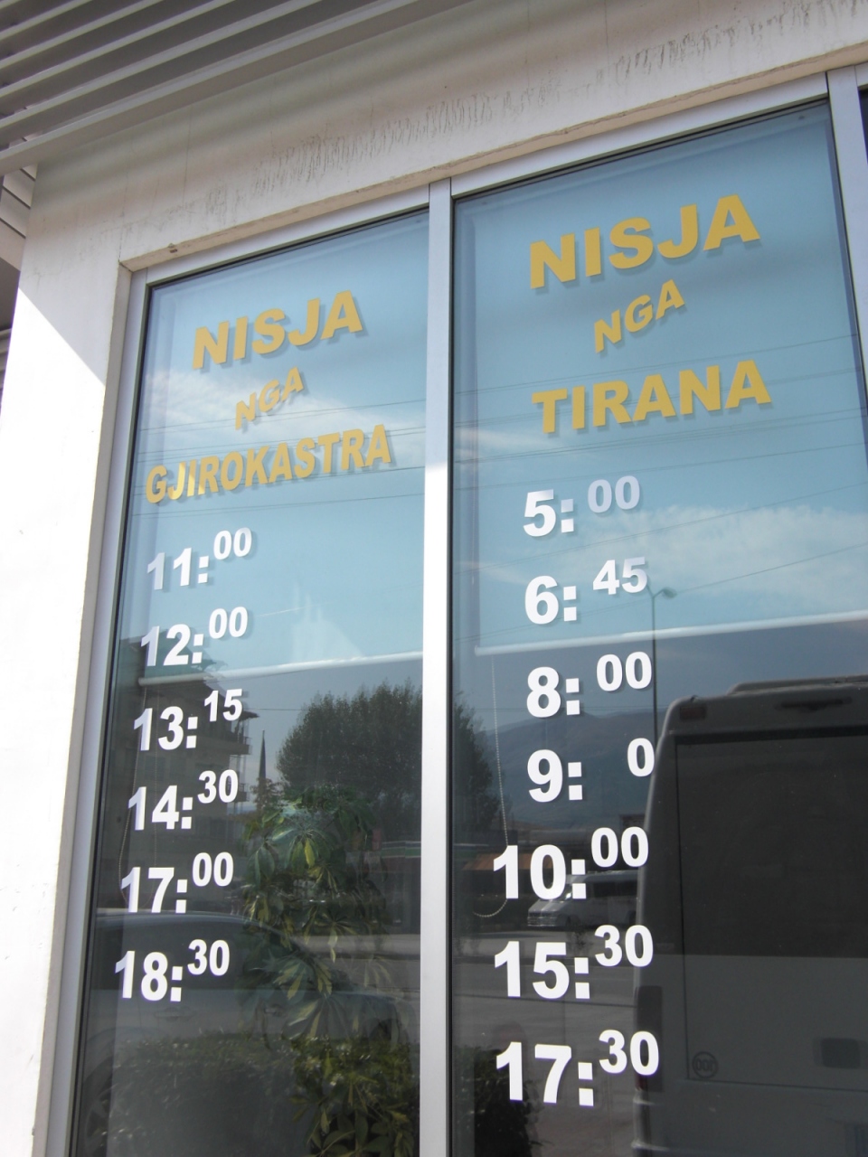 タイムテ-ブルですが、ティラナ・バスタ-ミナルそれにジロカストラ・インフォメ-ションのタイムテ-ブルも正しくなくて正解はジロカストラ・バスステ-ションのタイムテ-ブルのみが正解でした。