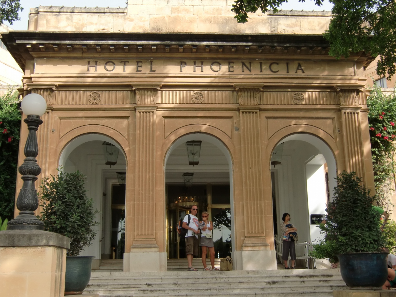 空港からのバスを降りるとすぐ横にあるフェニキアホテル。