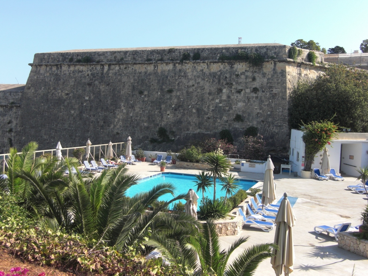ヴァレッタ・バスタ-ミナル横に位置し窓からはヴァレッタ市街が見渡せお庭の奇麗な落ち着けるホテル!