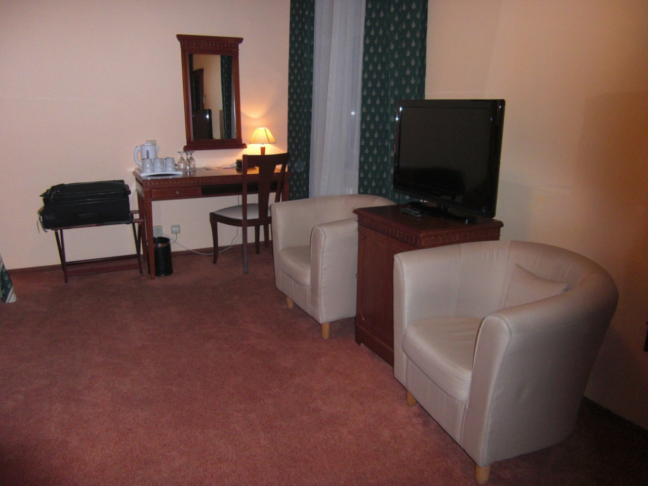 前面にインタ-コンチネンタルがあるので景色は見えにくいのかなと思っていましたが部屋に入ると鎖橋と王宮、ドナウ川が見渡せ電気ポットもありバスル-ムもゆったりとしてとっても寛げました。