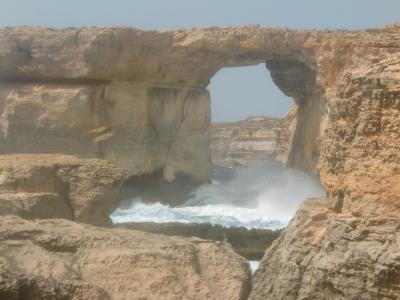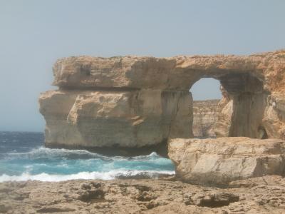 ゴゾ島のイムジャ-ル港からホップオンホップオフのバスでアズ-ルウインドウまで行きア-チに上がって先端から海を覗きこみました。