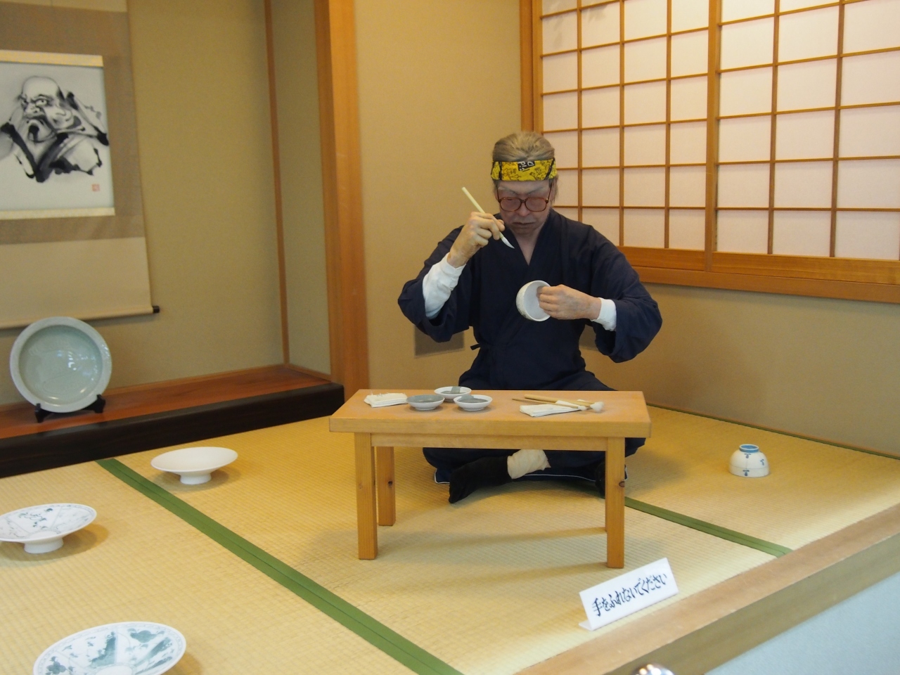 1階に観光案内所があり、そこでレンタサイクルを借りて波佐見の町を自転車で見てまわりました。同じ1階にはくらわん館があり地元の特産品や波佐見焼を販売しています。町内のお店で買うより少し安かったです。2階は波佐見町の歴史的資料や波佐見焼の工程などが展示紹介されています。又、ロボットの源さんが一生懸命絵付けをしています。波佐見に来たらこの陶芸の館と中尾山の交流館は是非立ち寄りたいところです。