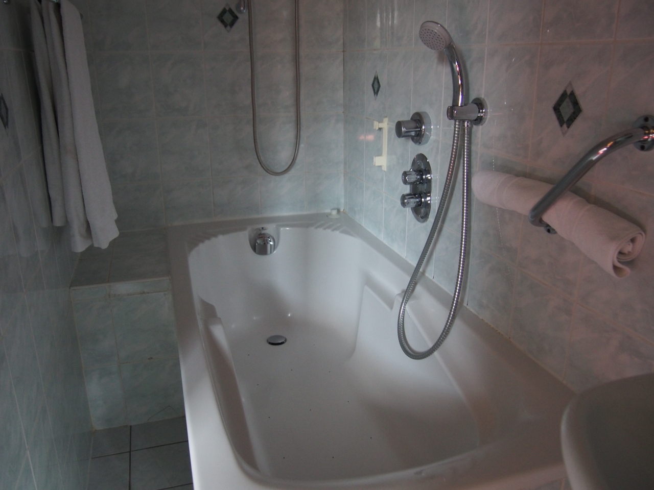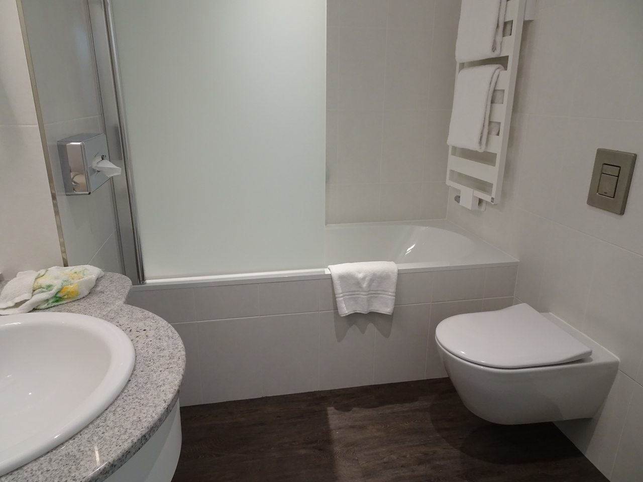 部屋の浴室はバスタブしシャワーが分かれていました。トイレはシャワートイレでした。フロントのスタッフに日本語の話せる方が一人いました。スタッフは皆さん親切でした。- 旅行時期