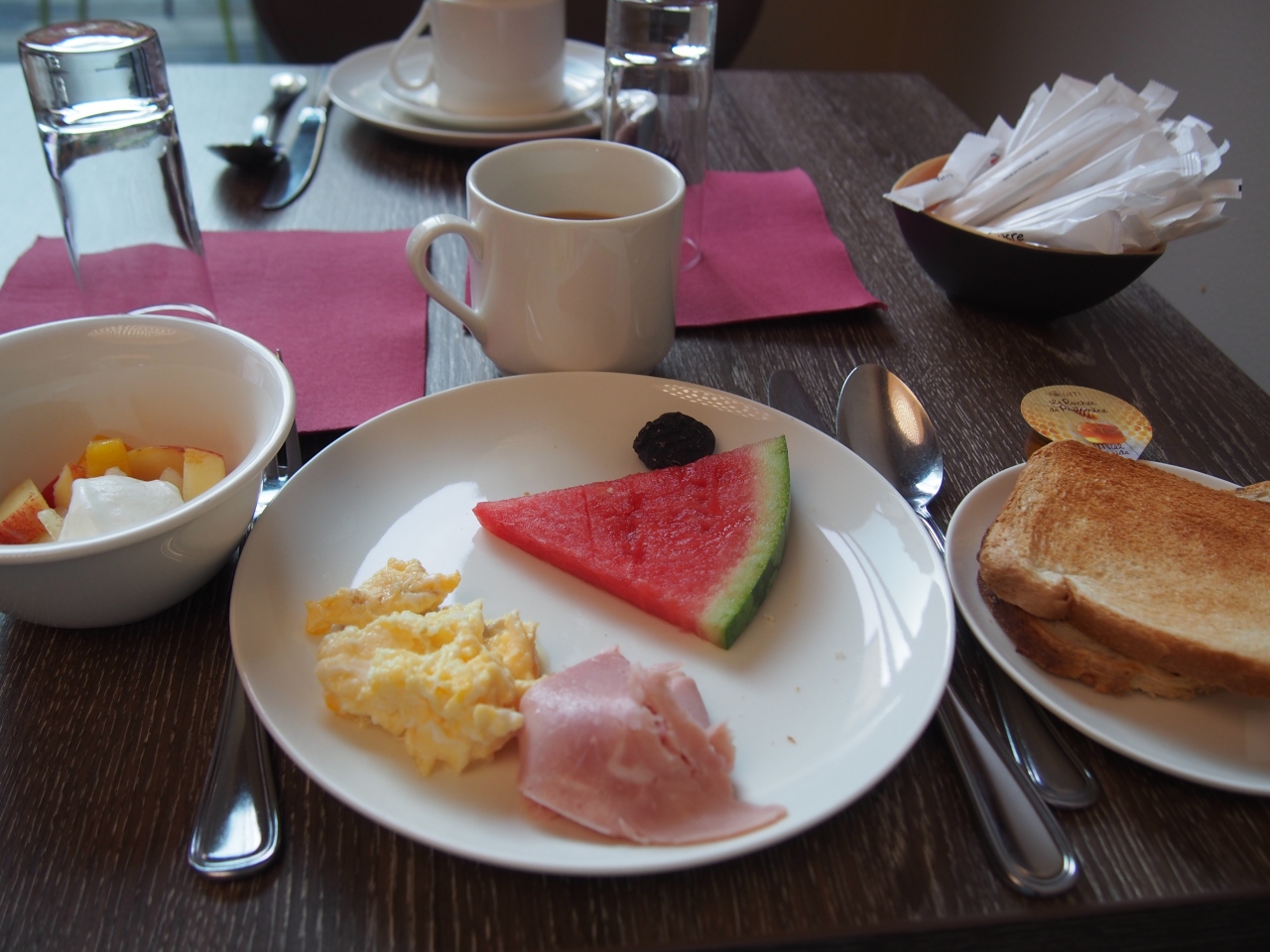 朝食の種類は豊富で美味しくいただきましたが、コーヒーはマシンでセルフサービスでした。- 旅行時期