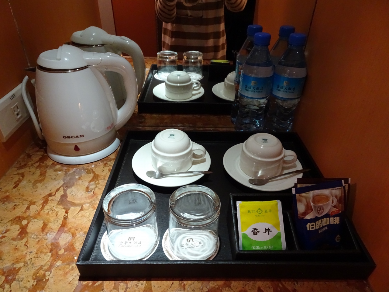 部屋は十分な広さでティーセットと電気ポットが置いてありました。