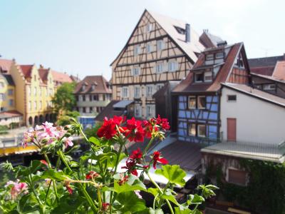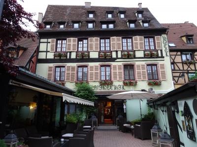 プティットヴェニスに面したコロンバージュの可愛らしいのホテルです。窓を開けると運河が見えて素晴らしい景色でした。部屋は屋根裏部屋のようで、広くはないですが、一人なので十分でした。パステルブルーのバスルームにはバスタブもありゆっくりお湯につかる事が出来ました。朝食のレストランは運河沿いで雰囲気も良く、種類も色々あり、クグロフもありました。コルマールに行ったら又こちらのホテルに泊まりたいです。