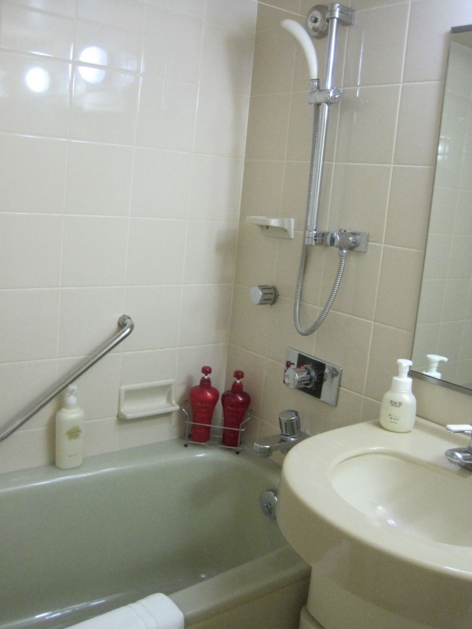 大きめのバスタブですが、シャワーは固定式でした。それがちょっと残念。