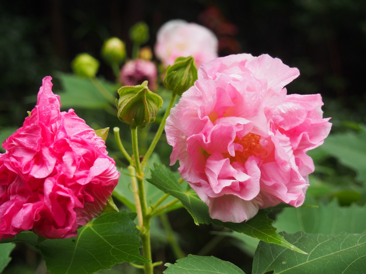 酔芙蓉というのは芙蓉の一種で朝は白く、午後にはピンク、夜は紅く変化していく花で、その様子がお酒に酔う様子に似ている事からこの名前がついたと言われています。