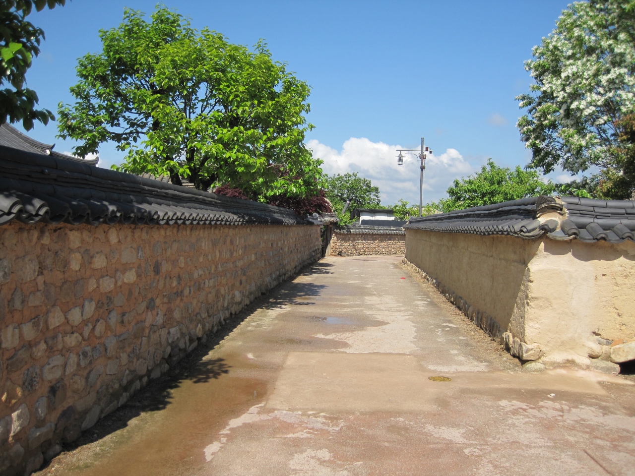 新緑の美しい5月に訪れました。時が止まったかのような、朝鮮時代の両班と呼ばれる貴族階級の人が住む瓦屋根の邸宅と、庶民が住む藁葺きの小さな家がとても良い状態で保存されています。