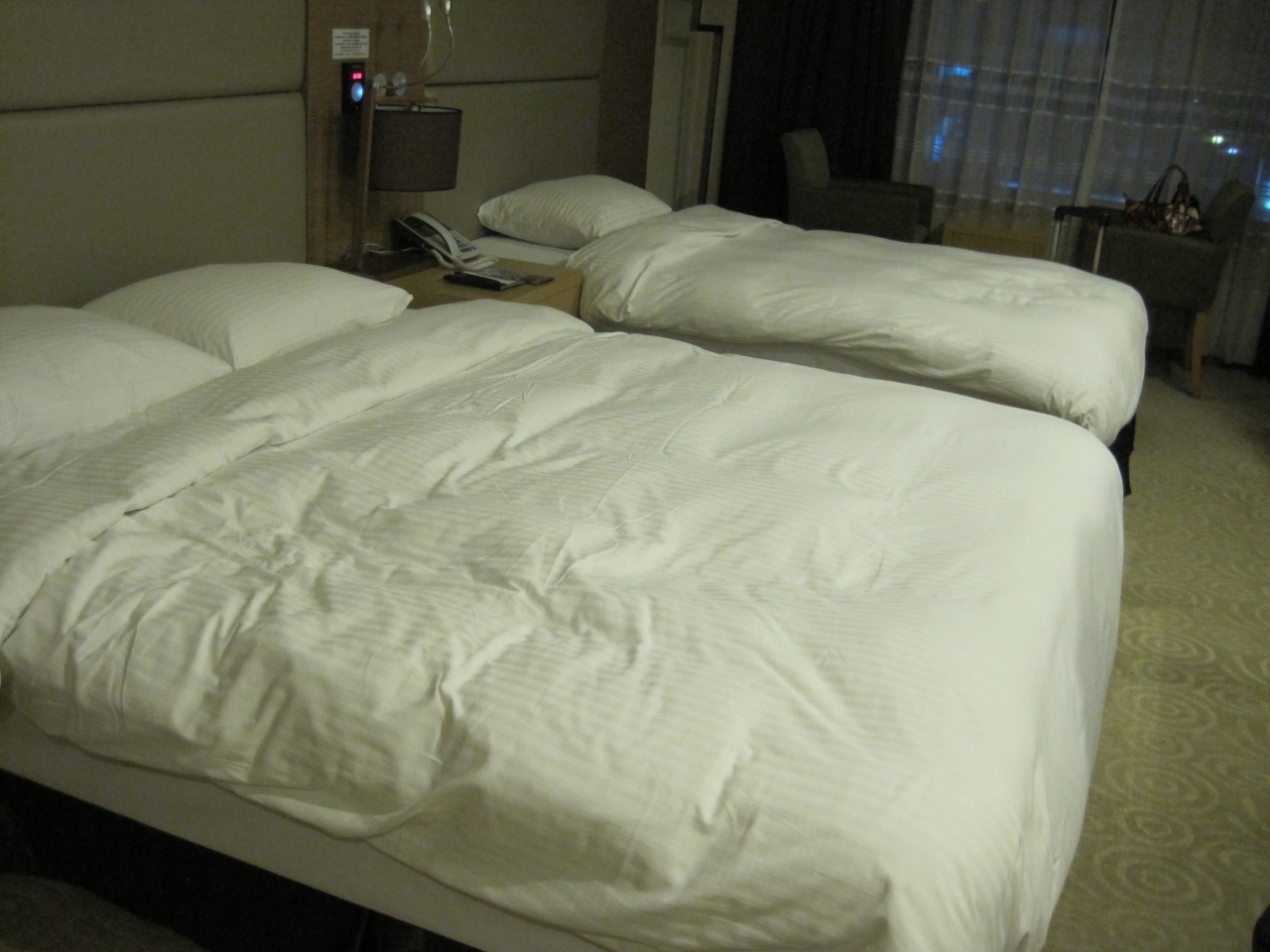 ツインの部屋に泊まりましたが、部屋は狭かったです。