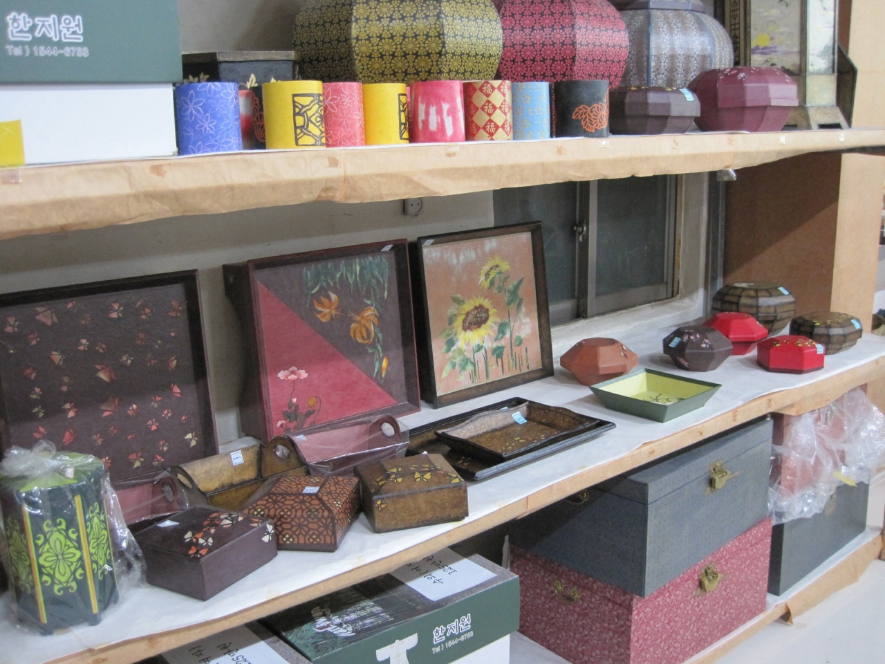 私達が訪れた時はちょうどお昼時でしたが、展示室と韓紙が山積みになった部屋を見学しました。韓紙を使って制作されたものを見るだけなら1時間もあれば充分だと思いますが、紙すきの様子を見学したり、色んな体験をしようと思うと半日ぐらいかかると思います。