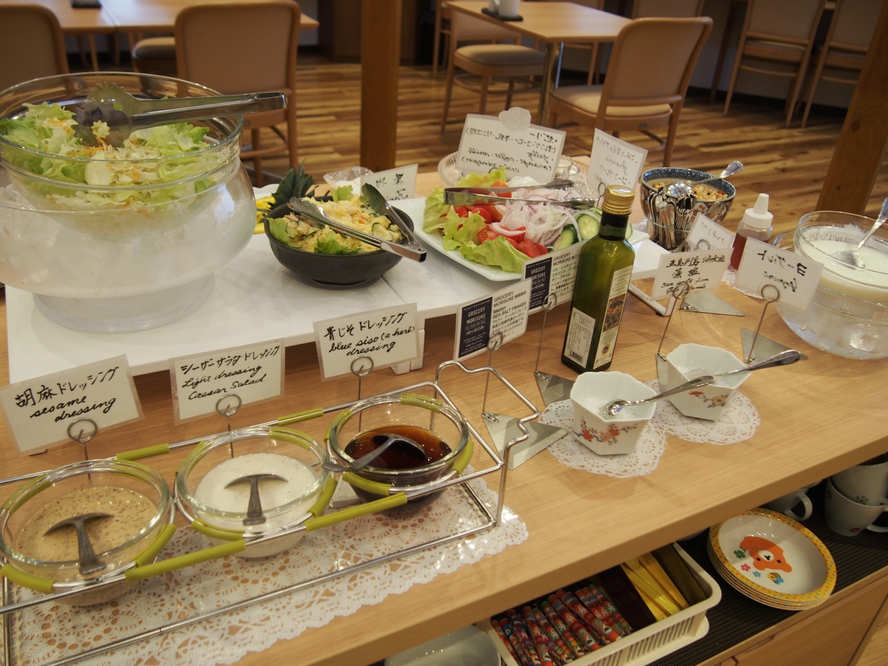 観光客だけでなく、ビジネスマンも多く見かけました。朝食会場には波佐見焼の食器が置いてあり、お気に入りの器で食べられます。