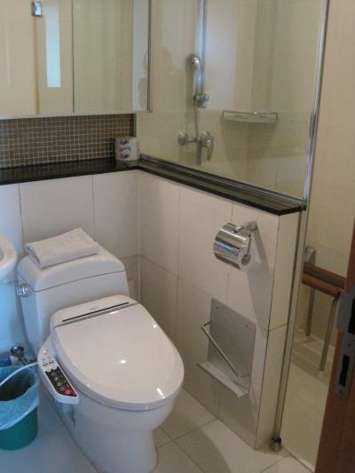 - 部屋のバスルームは狭いけど、パブリックスペースにお風呂もシャワートイレもある。