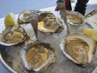 お料理は生牡蠣が最高でした。日本の牡蠣より少し小粒でま~るい牡蠣です。レモンをしぼって、つるんと一口。とっても美味しかったです。