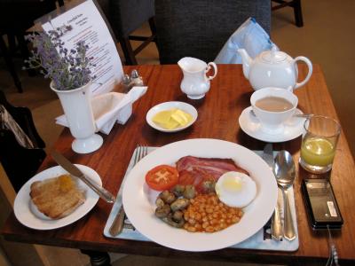 レストランは、テラス側は日差しが入って明るく、奥の方は落ち着いた感じになっています。フル・イングリッシュ・ブレックファーストはボリュームたっぷりでお腹いっぱいになります。