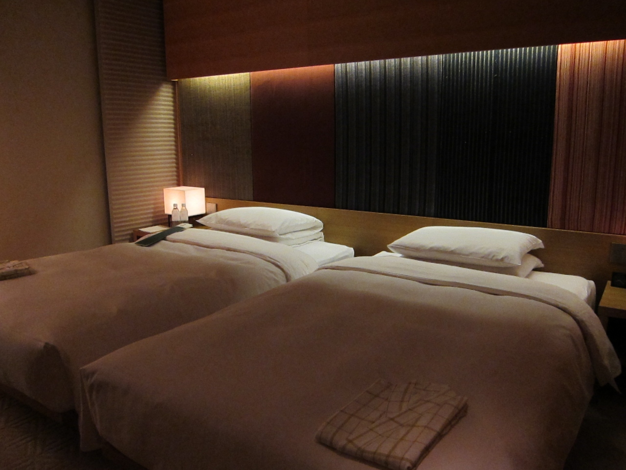 8階以上のダブルベッド×2の部屋に宿泊しました。