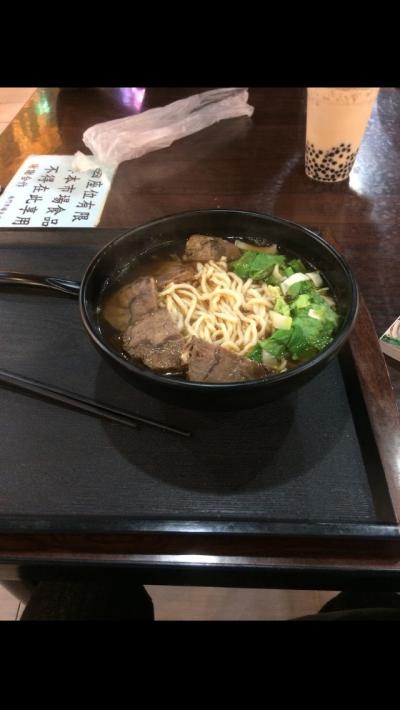 南門市場内のフードコートで食べた牛肉麺(ニューローメン)。友人はタピオ...