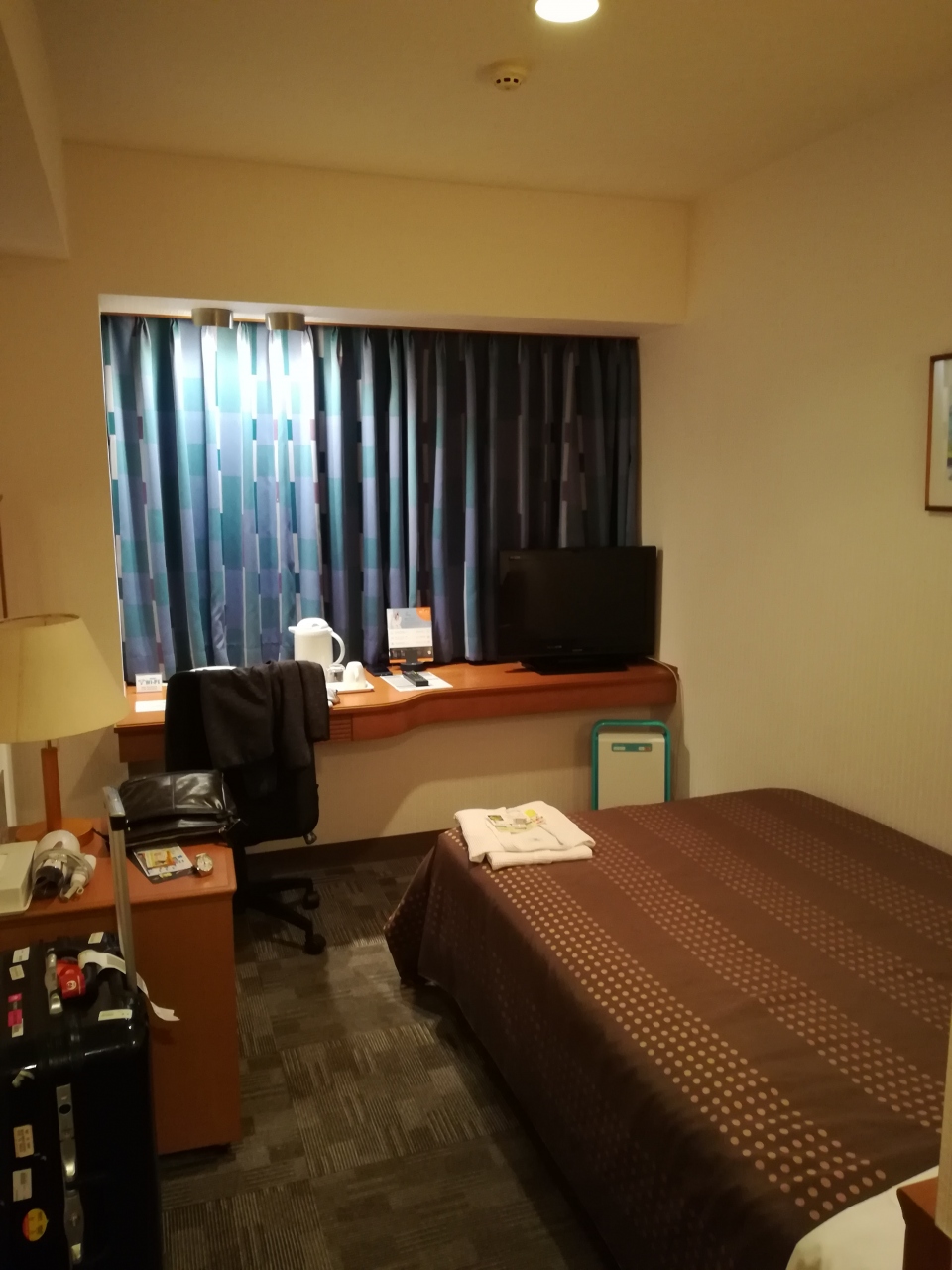 - いわゆるビジネスホテルであり一人で過ごすには十分な広さ。