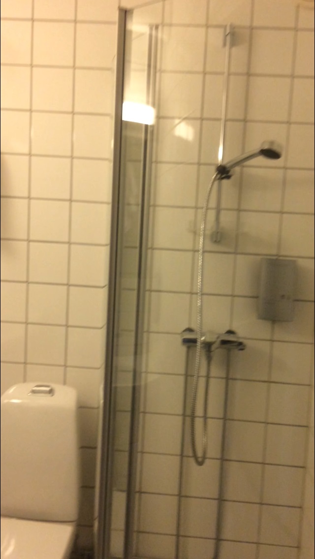 北欧のホテルはトイレとシャワー場をカーテン一枚で仕切る様式が多いと思いますが、こちらのホテルはガラス版で仕切られていました。ガラス版の下の部分があいていたため水は洗面台の方まで流れてしまいます。- 旅行時期