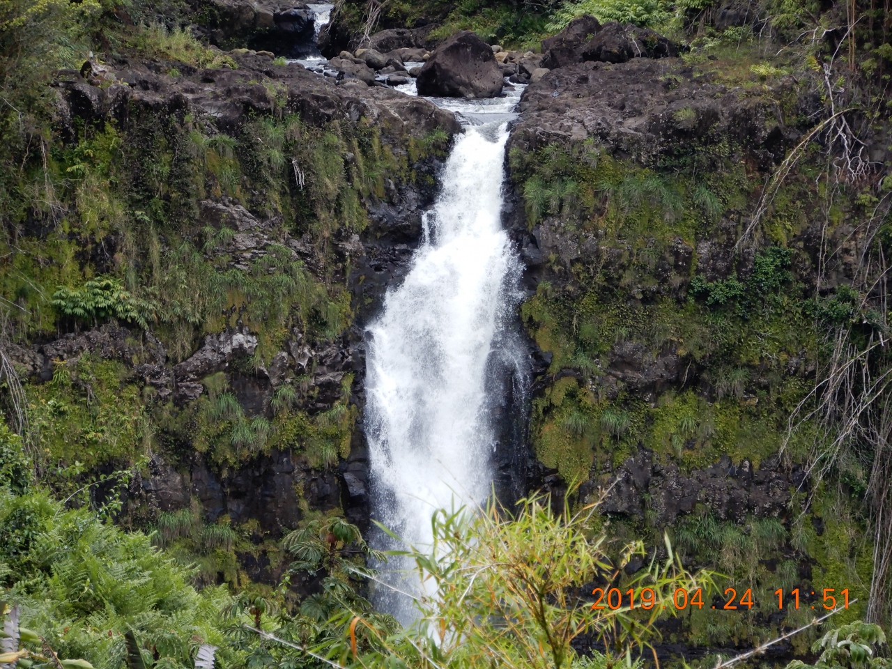 今回はハワイ島一周600キロをチャーター車でハワイ島観光アルアルを11時間で駆け足で周りましたので、此の滝は駐車場付近から見ただけなので、木が邪魔して滝の上部しか見えませんでした・・・下まで降りる時間が無かったのが残念です。- 旅行時期