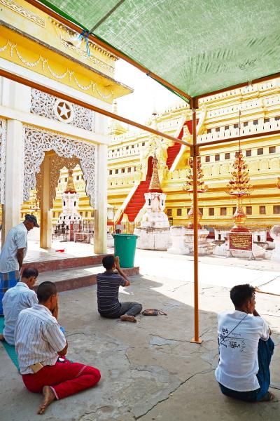 ミャンマー各地から聖地巡礼ツアーに訪れる参拝者たちの外せないスポットらしく、特に昼間は揃いの帽子やロンジーを着用した人々でごった返していました。