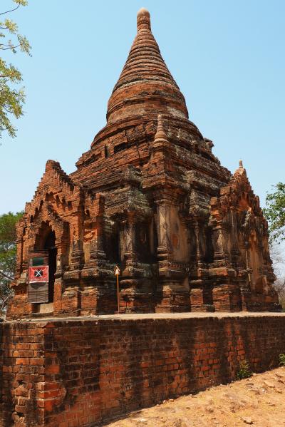 パガン王朝で最後に建築された仏塔で、かつては登頂できたようですが、建物の痛みが激しくなったのと、2016年の地震の影響から周囲を有刺鉄線が取り囲み、立派な門が設けられているため下から眺めるのみになっています。