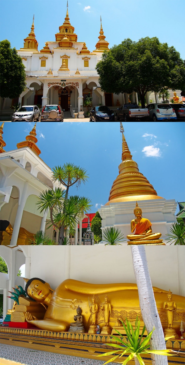 本堂は新しいキレイな建物で、本堂の端に涅槃仏が納められており、その向かいにはピカピカのチェディが建てられています。