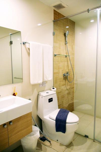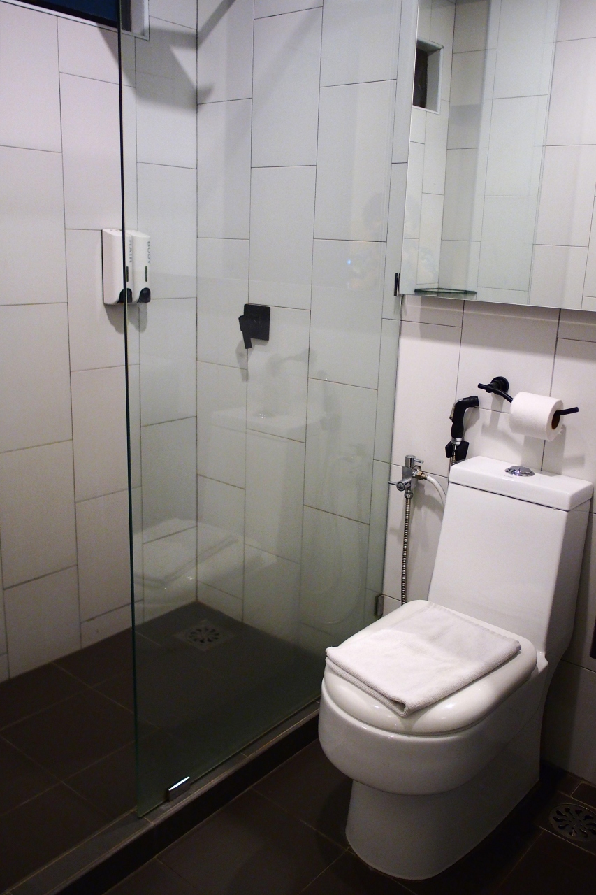 シャワーは天井からの固定式とハンドシャワー両方あり、湯量は豊富なのですが常時ぬるめのお湯だったのが、暑いのでぬるくても気にはなりませんが少し残念でした。