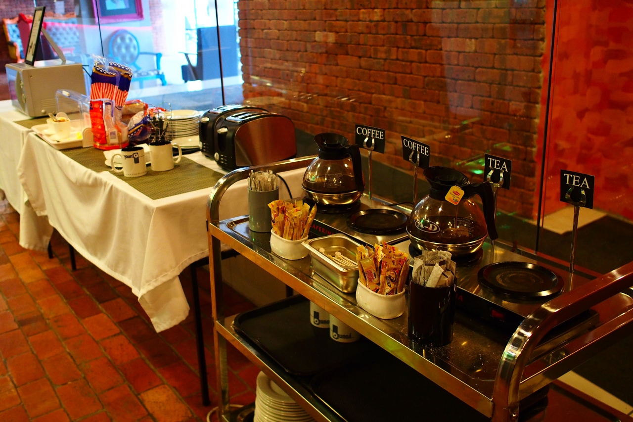 朝食はフロント奥の一角に、簡単ですがトースト・紅茶・珈琲が用意されています。