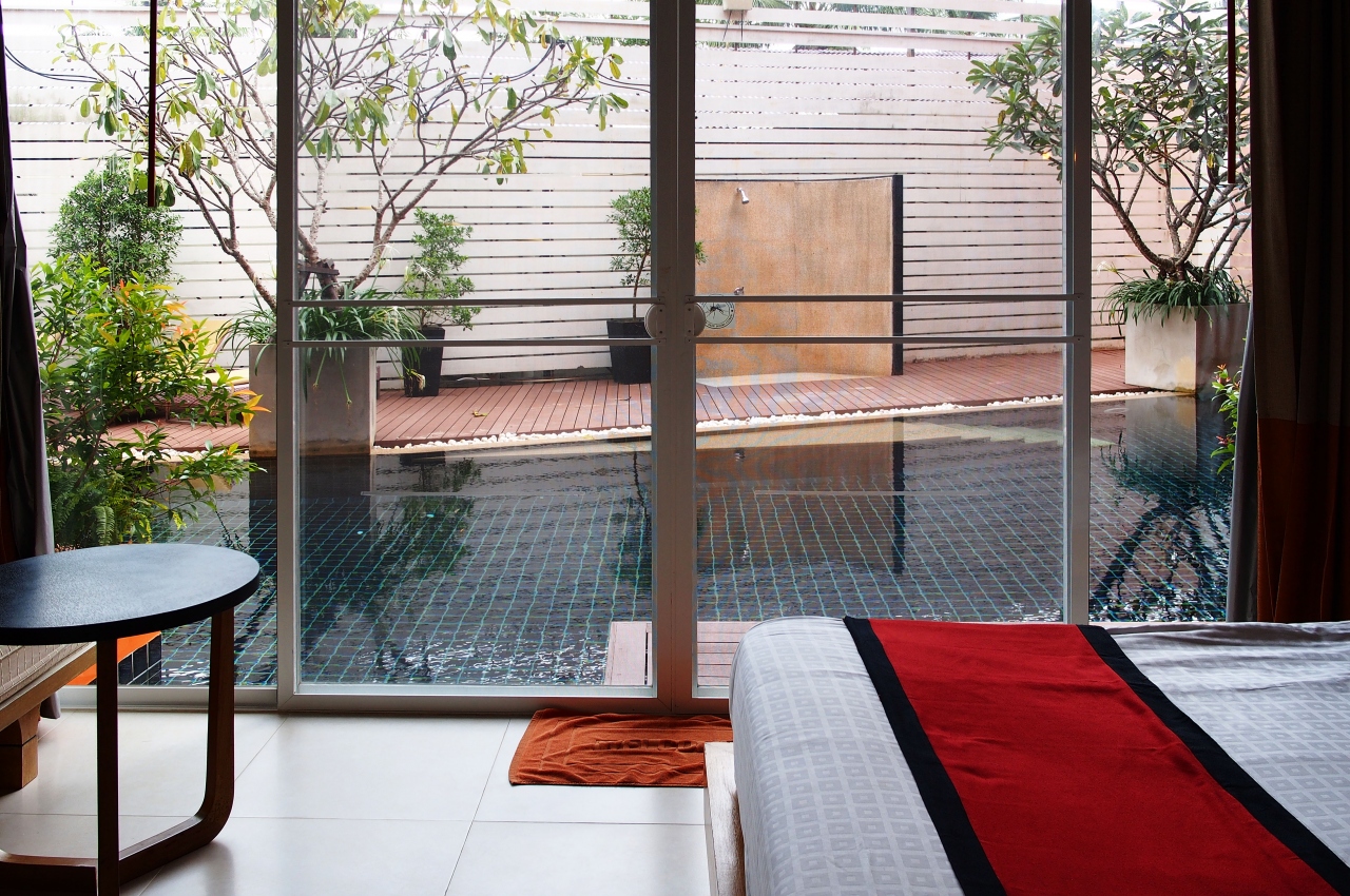 中国人の大家族が10人以上でガラス戸一枚隔てた先で大歓声をあげながら、私たちの部屋のデッキに登って飛び込みを始めたときは苦情を言いに行こうとしましたが、フロントのタイ人スタッフも苦虫を潰したような顔で困っていたので、諦めました。
