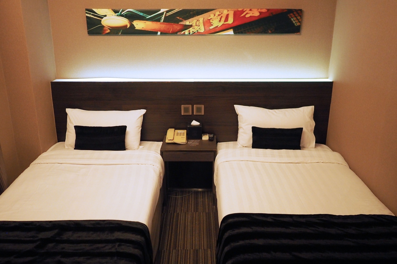 客室はドアを開けたら直ぐベッドなので狭いのですが、スーツケースがギリギリ2つ広げられるので日本のビジネスホテルよりは若干広く、天井が高めなので圧迫感はありません。