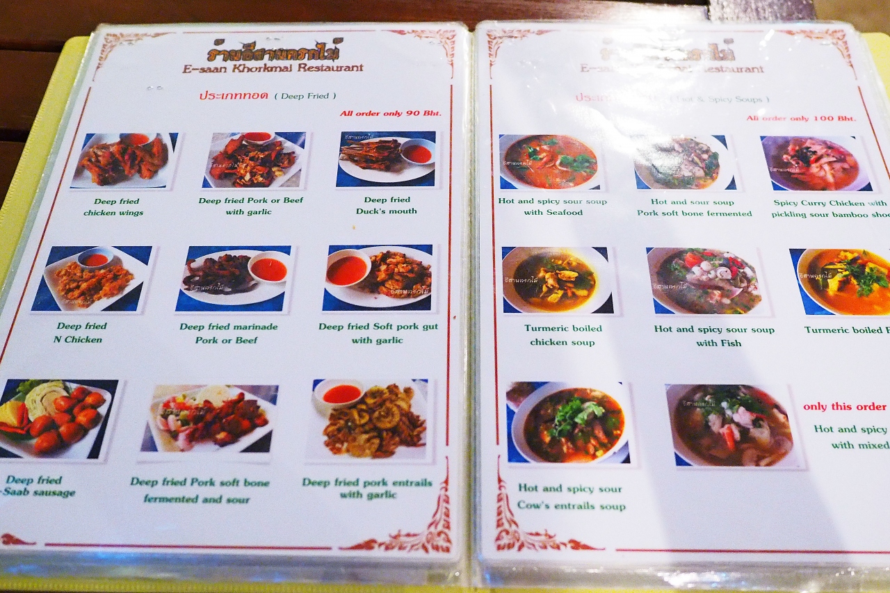 料理の種類は豊富でイーサン料理のおかずが90B~、ソムタムなどは50B~なので価格帯もお手頃ではないでしょうか?