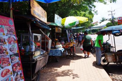 アオナンビーチ方面に向かえば、徒歩2〜3分でムスリム系の人が集まってる屋台街(ハラルフードのみ・屋台では販売していないけどビールの持ち込み可)があり、5分も歩けばレストラン街が始まるので、とても便利でした。- 旅行時期